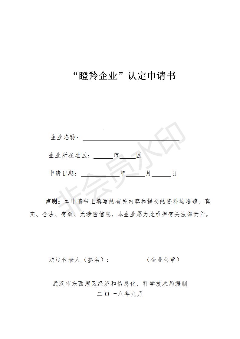1. 臨空港開(kāi)發(fā)區(qū)(東西湖區(qū))瞪羚企業(yè)認(rèn)定申請(qǐng)書(shū);