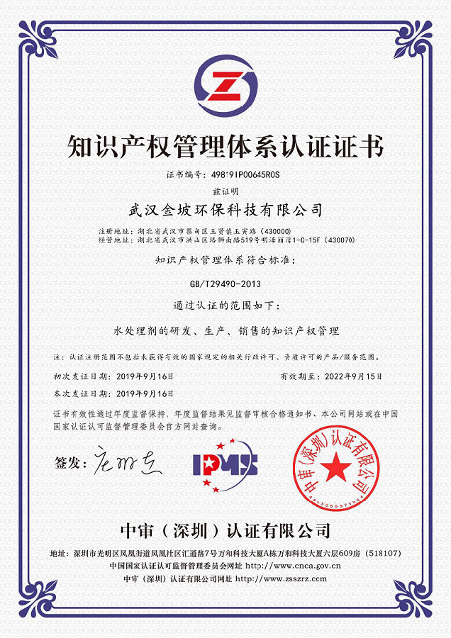 熱烈祝賀武漢金坡環(huán)??萍加邢薰居?019年9月獲得知識產(chǎn)權貫標認證證書,這意味著武漢金坡環(huán)??萍加邢薰驹谥R產(chǎn)權領域獲得到重要認可,在知識產(chǎn)權方面得到進一步規(guī)范和在綜合競爭力得到進一步提升。