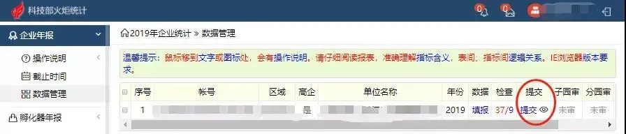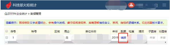 進入『科技部火炬統(tǒng)計調(diào)查』-『我要辦理』;