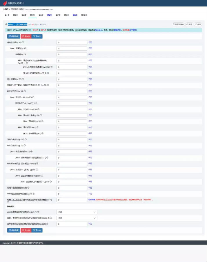 填寫每欄數(shù)據(jù),填完一步點擊『保存數(shù)據(jù)』-『下一步』;