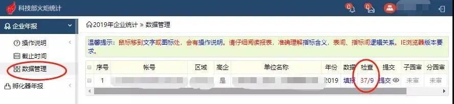 填寫完成后,點擊『數(shù)據(jù)管理』,對錯誤項進行檢查,錯誤項必須修改;
